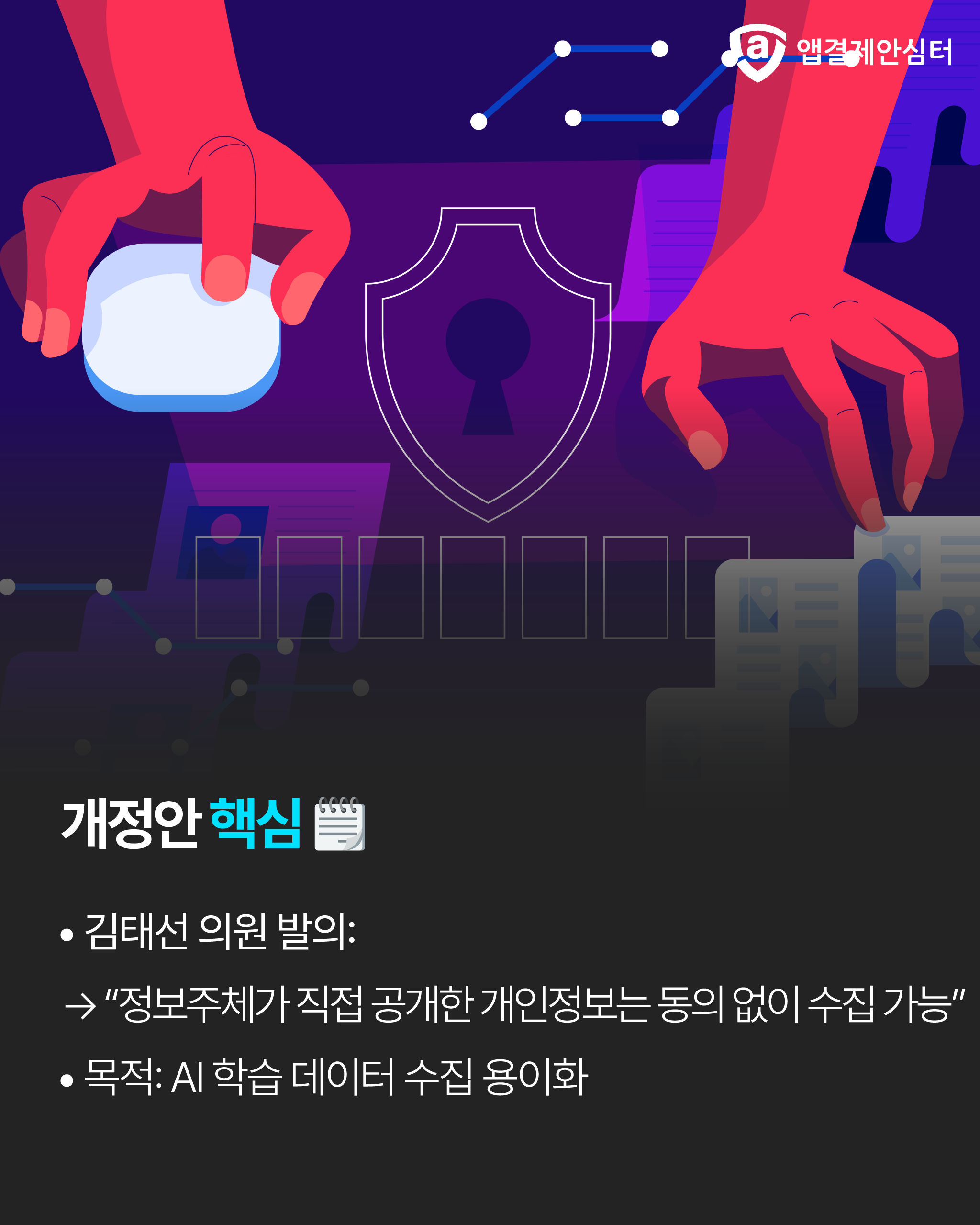 최근 더불어민주당 김태선 의원이 대표 발의한 개인정보 보호법 개정안은 이 논쟁에 불을 지폈습니다. 개정안의 주요 내용은 정보 주체가 직접 또는 제3자를 통해 공개한 정보는 동의 없이 수집할 수 있도록 한다는 것입니다. AI 학습을 위한 데이터 수집을 더욱 용이하게 하려는 목적이죠.