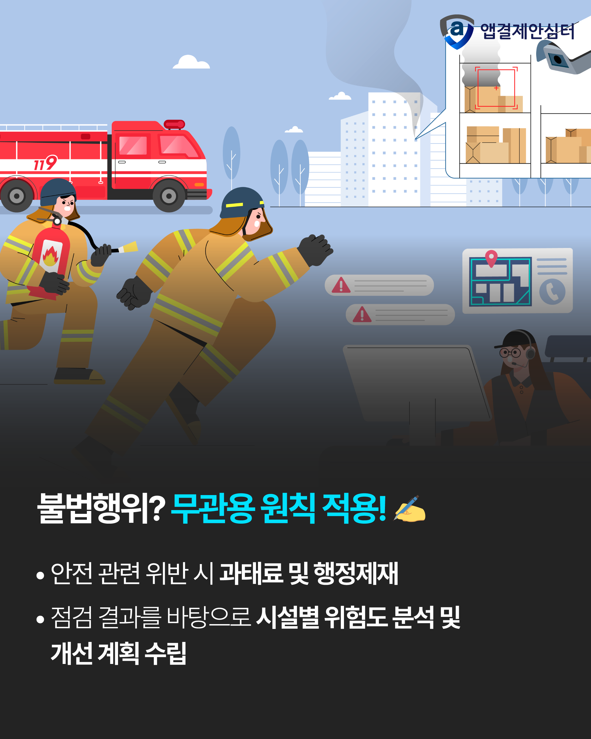 소방청은 안전 관련 불법행위가 적발될 경우 과태료 부과 및 행정제재를 엄격히 시행할 방침입니다.
