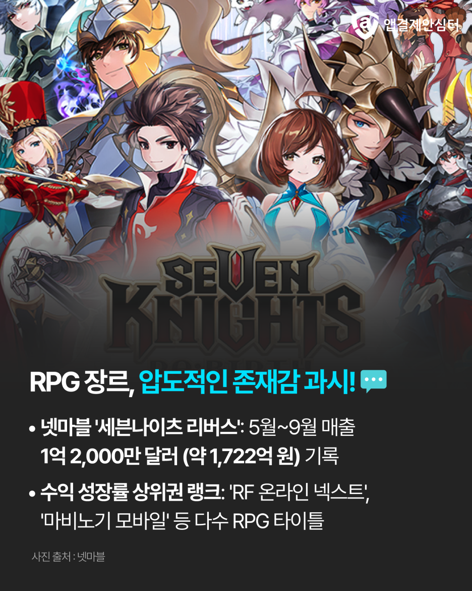 - 넷마블 ‘세븐나이츠 리버스’: 5월 출시 후 9월까지 약 1억2천만 달러의 매출을 기록하며