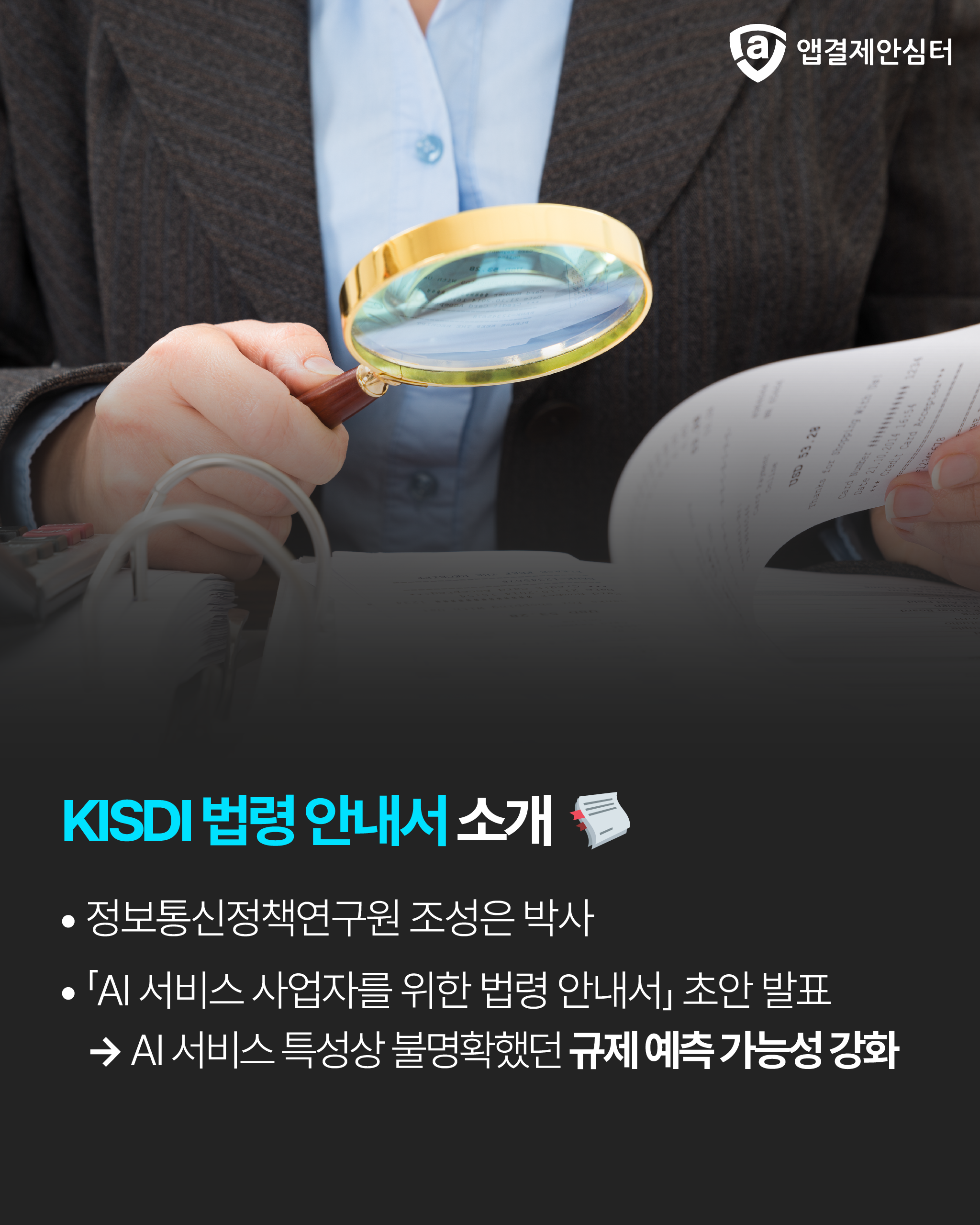 정보통신정책연구원(KISDI) 조성은 박사는 새롭게 마련된 「AI 서비스 사업자를 위한 법령 안내서」 초안을 공개했습니다.