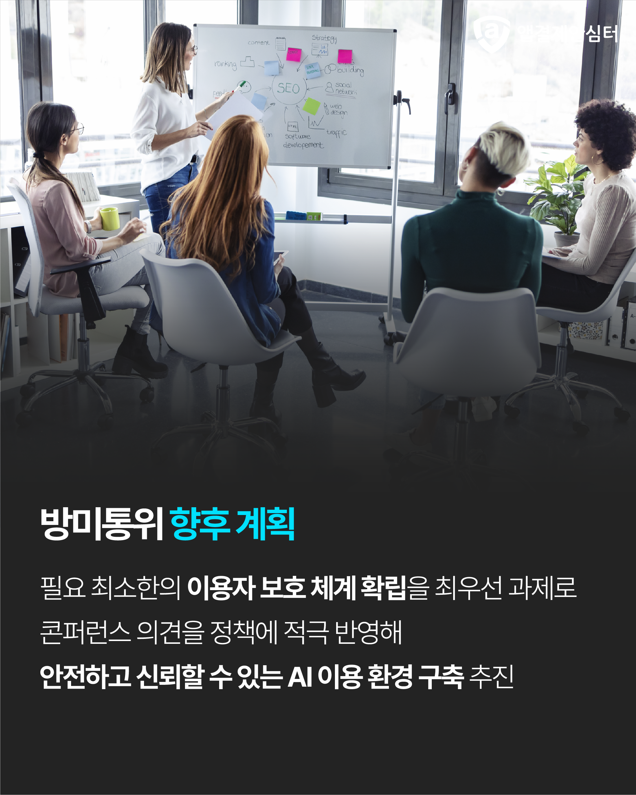 이번 콘퍼런스에서 논의된 내용을 정책에 적극 반영해 안전하고 신뢰할 수 있는 AI 이용 환경을 만들기 위해 지속적으로 노력하겠다고 밝혔습니다.